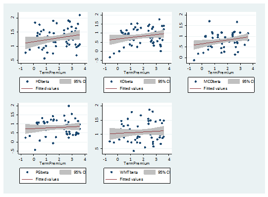 Years after its inception, beta is still a major cornerstone of the financial industry, widely used by both academic and practitioners. Given its importance, literature continually evaluates and proposes improvements on beta forecast. This document extends Ghysels and Jacquier (2006) and examines firm characteristics and macro-economic characteristics which may affect realized beta (Andersen et al 2005) of five assets from the Dow Jones Industrial Average, including Home Depot, Coca-Cola, McDonald’s, Procter and Gamble, and Wal-Mart for the 1991 to 2005 period. Data is downloaded from WRDS and other academic databases. Single-factor models, multivariate models and visual analysis are employed as part of the methodology. Statistics and graphs are done using Stata. We find each firm having unique characteristics and its beta is influenced by different variables. We document improvements of multivariate model over single-factor model. In sum, we find Default Premium has strongest influence on beta of Procter and Gamble, as measured by superior R2 and level of confidence.